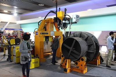 北京時代科技股份有限公司受主辦方邀參加了本次展會。時代展區位于展會的核心區“特種設備智能制造展示區”,展示了時代單絲窄間隙埋弧自動焊設備及時代8軸聯動管道相貫線焊接機器人等產品。經過多年的不懈努力,時代自動焊接設備已為重容、核電制造、鍋爐、壓力容器、化工設備等行業的厚板、管道焊接提供了完美的解決方案,時代焊接機器人為電梯、起重機械、礦山機械等行業的標準件焊接提供了最佳的設備支持。廣大觀眾對時代的高端自動化設備贊嘆不已,來自國內外學術界的專家和媒體記者對時代展臺紛紛進行宣傳和報道。