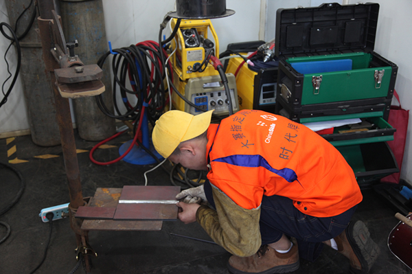 為了應(yīng)對這場高手的廝殺,時代焊機早已做好充分準備。賽場中30余個工位整齊而規(guī)范的擺滿了嶄新的時代焊機。時代為大賽提供的比賽機為:直流氬弧焊機PNE61-400及半自動氣保焊機A160-350。時代的技術(shù)支持人員早在賽前就將所有設(shè)備調(diào)試和就位完畢,等待著焊接精英們的苛刻考驗。本次焊接技術(shù)競賽實操考試的題目按兩個模塊設(shè)計,模塊1題目為板類對接和T型角焊縫焊接內(nèi)容,主要考核選手們操作實芯、藥芯氣保焊及手工焊條的技能。模塊2題目為填絲氬弧焊方法焊接大賽標志內(nèi)容,主要考核選手們氬弧焊接的技藝水平。在時代焊接設(shè)備的有力支持下,選手們都順利而圓滿地完成了各個規(guī)定賽題。從5月7日一早開始,時代焊機就開足馬力持續(xù)運轉(zhuǎn),經(jīng)歷了一天的使用,焊機一直發(fā)揮正常,焊接過程中沒有出現(xiàn)任何瑕疵。時代的幾名服務(wù)人員一直守候在賽場,隨時聽候選手和裁判的調(diào)遣。