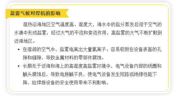 國內國沿海、沿江地區的焊接設備長時間在高溫、高濕、鹽霧狀態下運行,這對焊接設備散熱、絕緣等性能提出了更高的技術要求。為了滿足充分滿足客戶的需求,時代公司推出了耐鹽霧型NB-500(A160-500)半自動氣保焊機。