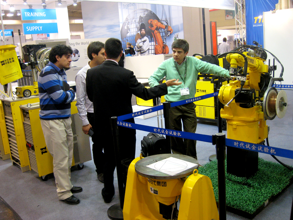 從2001年到2013年,時代公司連續參加了4屆德國埃森焊接展會。時代的展臺面積不斷加大,展品不斷創新,展品數量不斷增多。本屆展會時代公司展臺面積為54平米并進行了特裝布置。在展會上時代公司重點展示了新型全數字焊機,交直流雙絲埋弧,焊接機器人等產品。展品受到了現場觀眾的極大關注。從產品性能參數到外觀到價格,觀眾們都詳加詢問。不時有觀眾索要資料并拍照。高端產品以及智能化、自動化產品將是未來時代公司的主流產品。在這6天展會中,共有36個國家和地區的觀眾到時代展臺參觀交流。另外,還有來自世界各地的代理商參觀了時代展臺并進行洽談。由于全球經濟形勢持續低迷,所以本次展會總展位面積有所減少。原來預計參觀人數會減少,但是根據展后統計看,來時代展臺參觀交流的觀眾、代理商還是較多的。