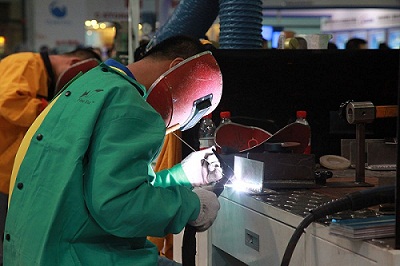 時代TD系列全數字脈沖一體機的亮相令廣大觀眾耳目一新。時代展臺的產品演示區配備了多臺全新的TD系列多功能焊機,該產品具備多種材料的焊接能力。時代的焊接技師們分別用鋁合金、碳鋼、不銹鋼等材料進行焊接演示,焊后焊縫精致美觀贏得了客戶的一致贊揚。大批觀眾圍攏在時代焊接演示臺前觀看焊接表演,通過與時代的焊接技師們的溝通,不少客戶還解決了一些焊接應用方面的難題。時代展臺的所有TD系列焊機均實現聯網控制,并用視頻手段予以實時展示。