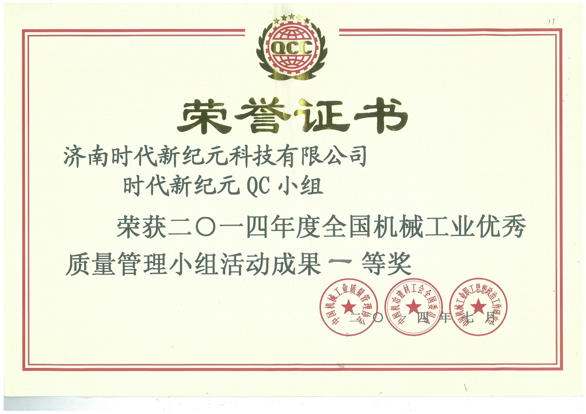 | 2014-08 | 2014年全國機械工業優秀質量管理小組獎 二等獎 | 中國機械工業質量管理協會 |